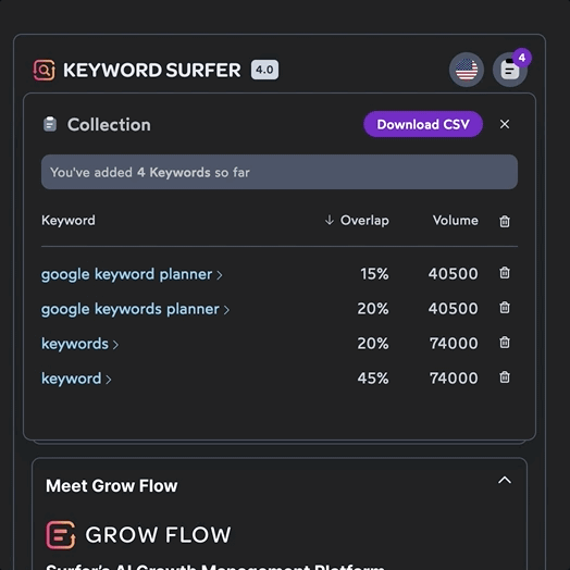 Pro TIP: Utilize the free keyword Surfer extension – a Chrome extension for SEO to enhance your browsing experience, enabling real-time SEO insights and on-page SEO analysis directly from your browser.