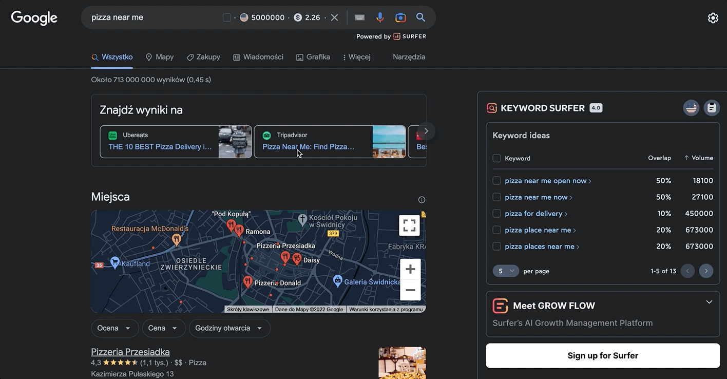 Simply start typing a search term in Google. Surfer will display monthly search volumes in a location of your choice.