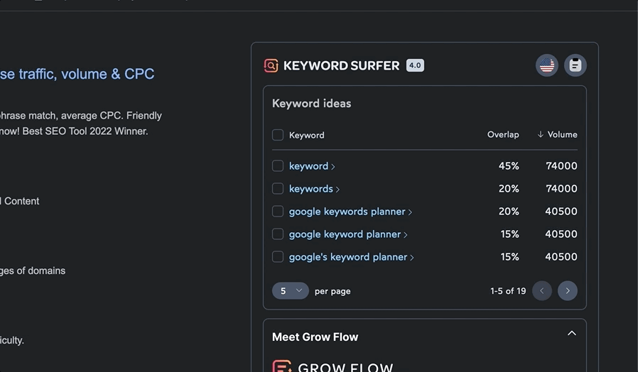 One of the key features of Surfer SEO is its Keyword Research tool, known as keyword surfer extension, which allows you to search for keywords and get data on search volume, CPC, and competition level. You can also use the tool to find related keywords and analyze their difficulty score to determine which ones are worth targeting.