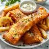 Crispy battered fish served with golden fries and tartar sauce.