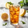 A refreshing glass of iced tea with a lemon slice and mint leaves.